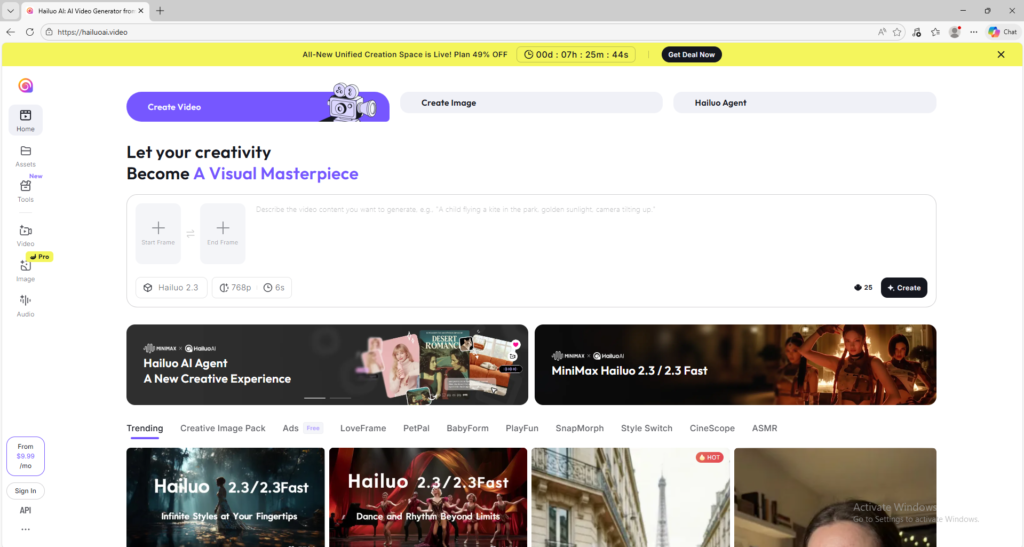 1. Visit the official Hailuo AI website and create an account or sign in.